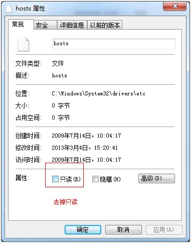 1. C:\Windows\System32\drivers\etc\ 在hosts文件上點(diǎn)右鍵-屬性去掉只讀